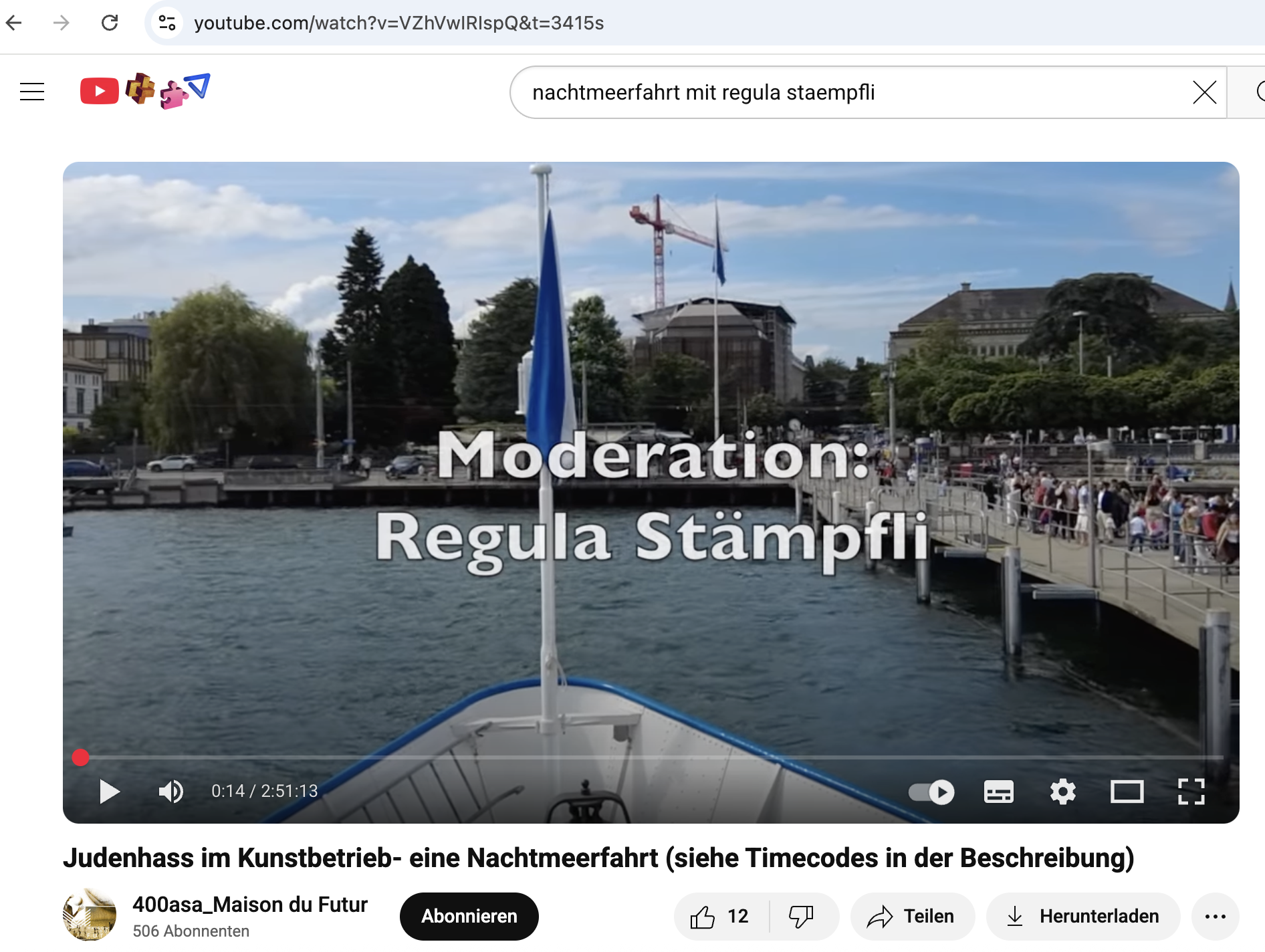 nachtmeerfahrt, maison du futur, regula staempfli moderiert die nachtmeerfahrt zum thema “Judenhass im Kulturbetrieb.”
