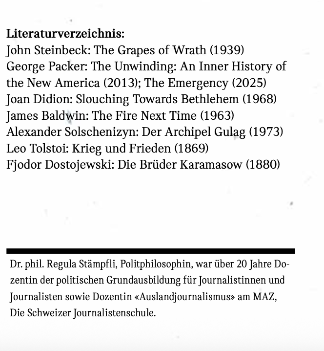 Über all dies denkt laStaempfli nach. Und endet mit einem Plädoyer: Mut zur Wahrheit und Wirklichkeit und das Eingeständnis einer tiefen Ambivalenz.