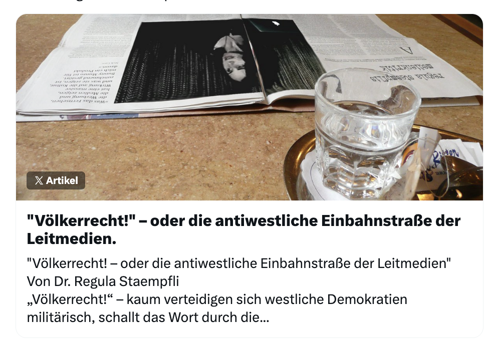 Was Sie leider auf SRF, ARD, ZDF, ORF nicht vernehmen werden: “Völkerrecht! – oder die antiwestliche Einbahnstraße der Leitmedien”