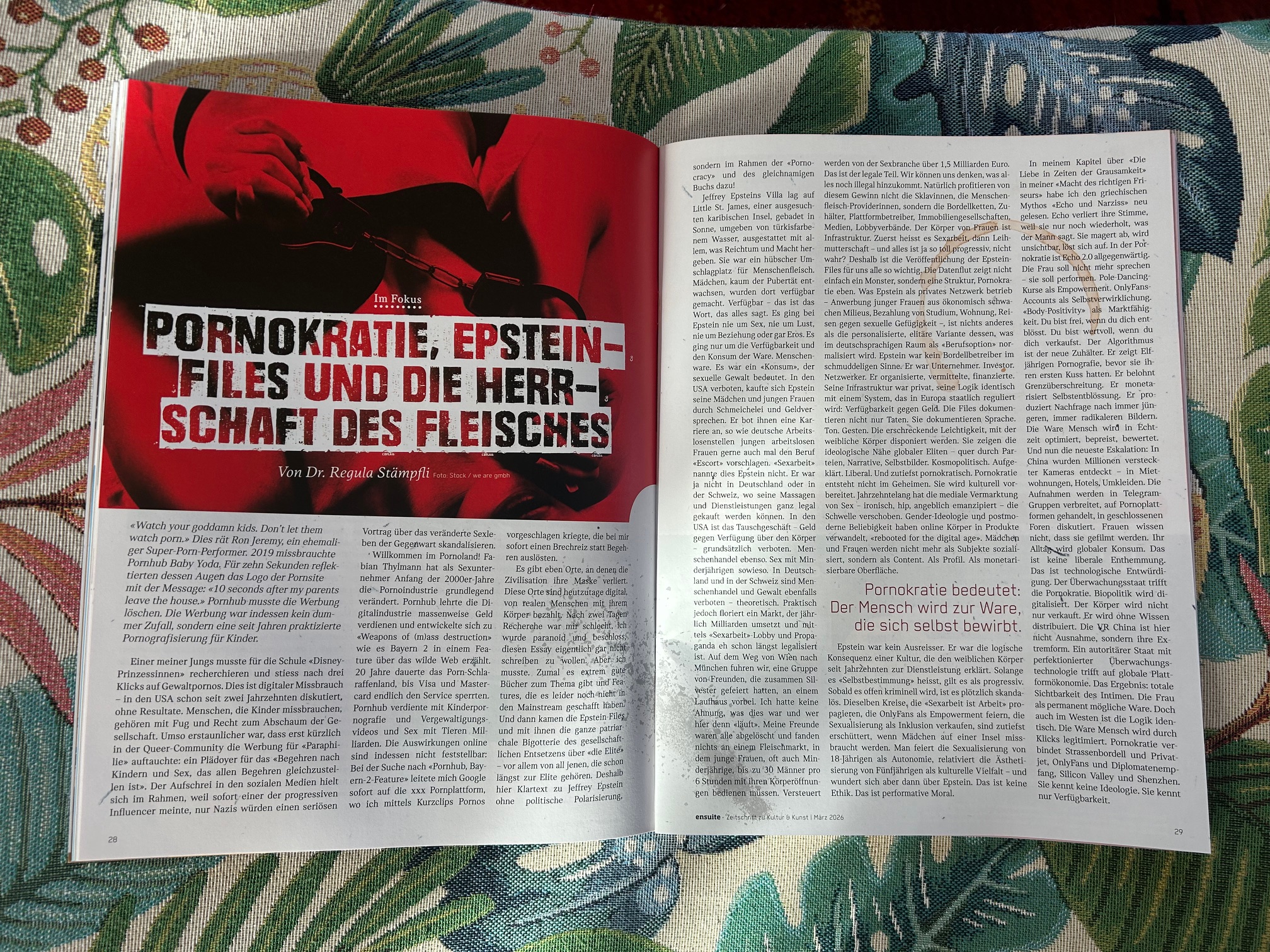 In meinem neuen Essay in ENSUITE MÄRZ 2026 analysiere ich die kulturelle Logik hinter Pornografie, Macht, Jeffrey Epstein und der digitalen Ökonomie der Verfügbarkeit.