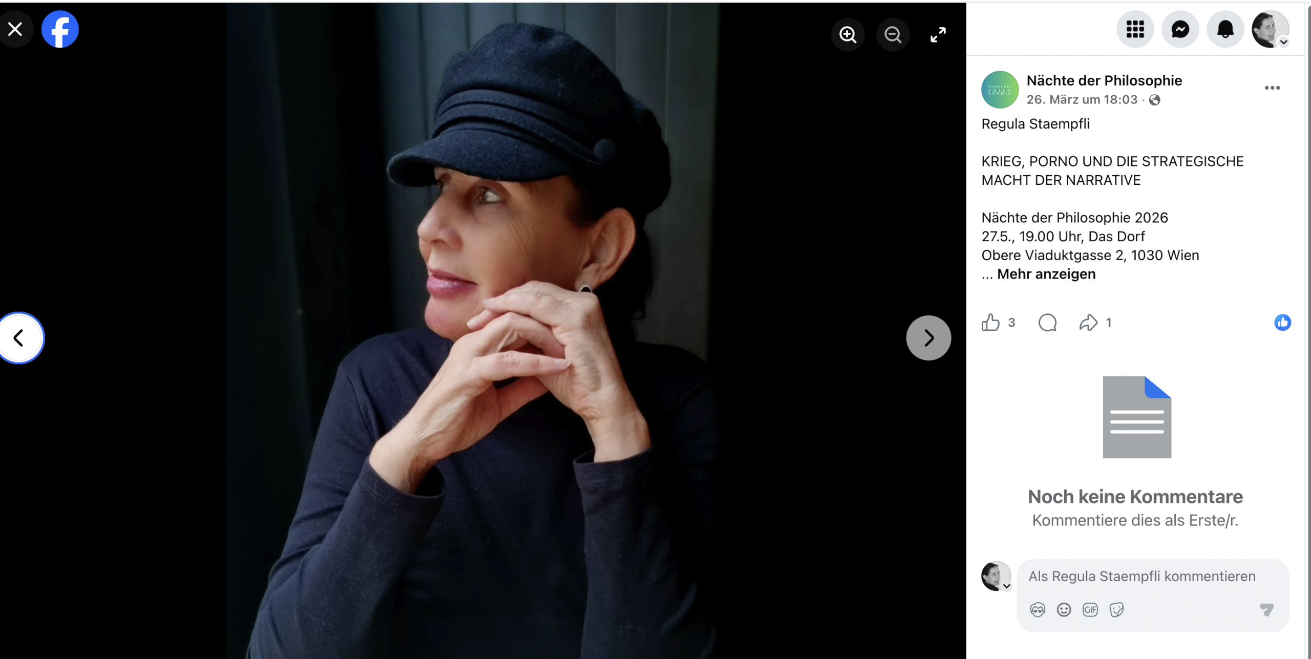 Die Politphilosophin analysiert Pornokratie, Krieg, Menschenbildern und den entsprechenden zeitgeschichtlichen Narrativen. Es ist eine Triggerwarnung angebracht: Es werden Inhalte von Gewalt, Sexualität und propagandistischer Sprache als Beispiele verhandelt. Podcaster: www.regulastaempfli.eu